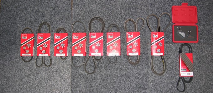Our comprehensive range of fan and automotive drive belts suit all applications.  We stock V Belts, Poly-V Belts (3, 4, 5, 6, 7 & 8 Ribs,) double sided Poly-V Belts and the new Elastic Stretch Ribbed Belts.  If you have an unusual type of belt that is not listed in our books, please bring your old one and we’ll do our best to match it up.
